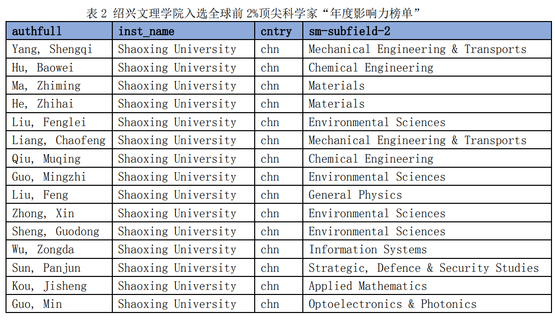 杨圣奇、胡保卫、马志鸣、何智海、刘风雷、梁超锋、邱木清、郭明志、刘峰、仲鑫、盛国栋、吴宗大、孙攀军、寇继生、郭珉15位学者入选全球前2%顶尖科学家“年度影响力榜单”。