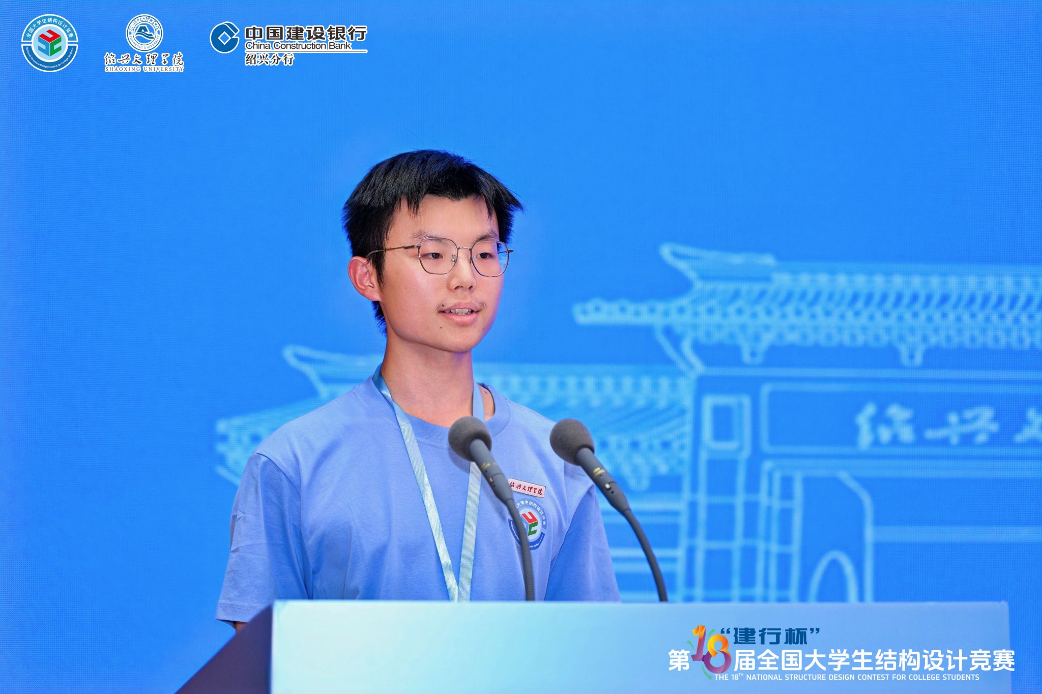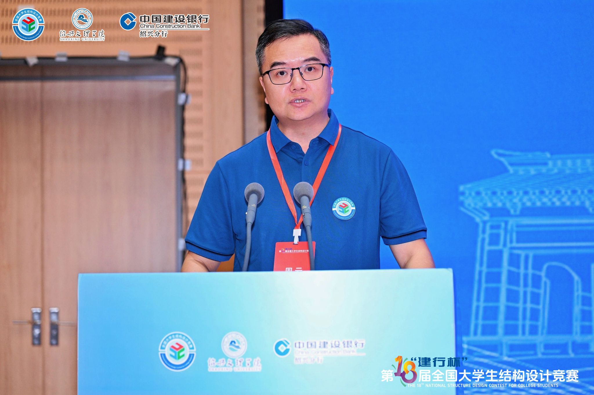 全国大学生结构设计竞赛总决赛评审专家委员会专家周云代表专家委员会承诺,将坚持公正、公平、公开的原则,以良好的道德标准和专业素养,严格遵循评审流程,认真执行评分标准,确保评审过程及结果的客观公正。他鼓励学生将绍兴的人文底蕴与工程精神融入设计思考,在大赛中收获成长与荣光。