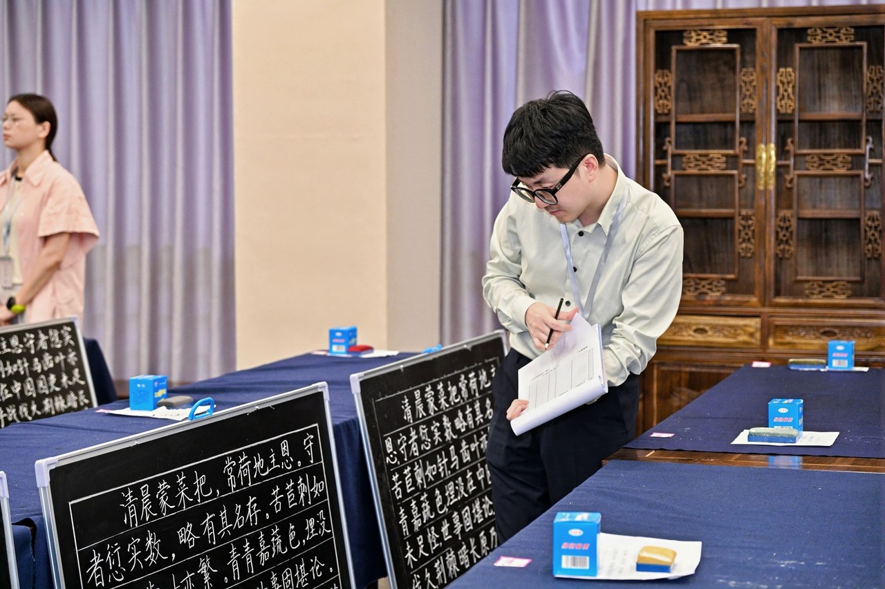 汉字是中华文明的基因,书写是文化传承的重要方式。粉笔书法既是教师教学的基本功,也是一门黑板上的艺术——于方寸之间展现布局之美,在勾提转折中传递文化神韵。本次大赛专设粉笔组别,体现了对教师书写能力与美育素养的高度重视,也是对师范生教学基本功的一次实战检验。选手们以粉笔为媒、汉字为体,书写经典、传续文脉。(记者 顾蓉佳)