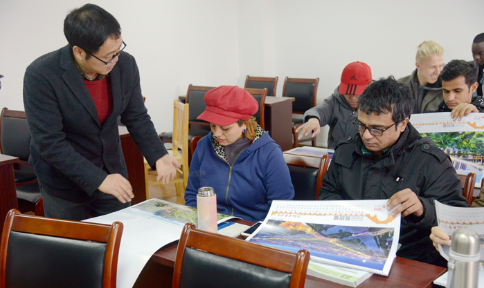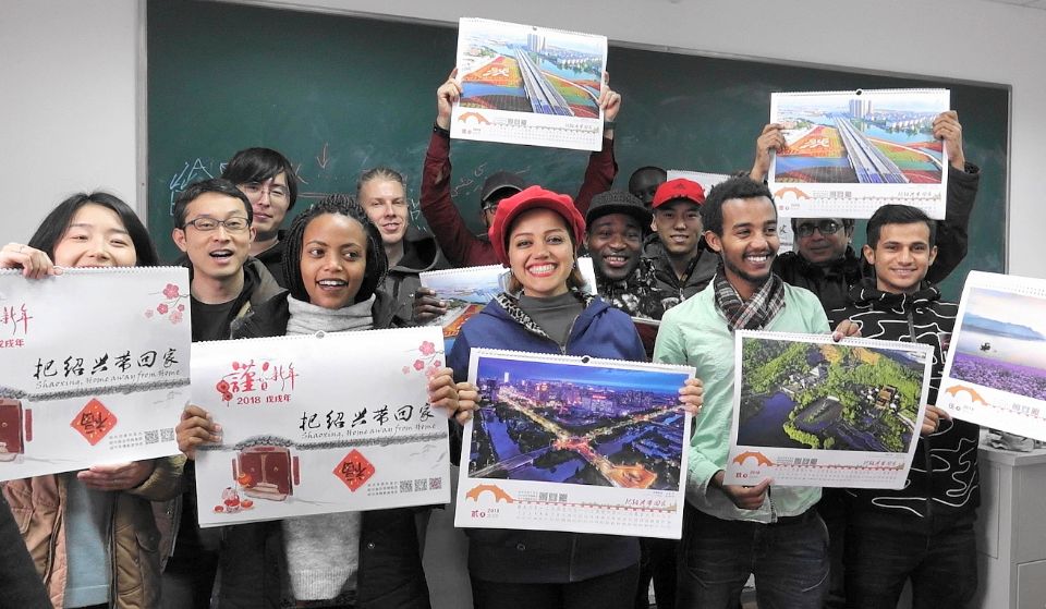 1月2日上午,新年“开学”第一天,校党委宣传部、外事处、校教职工摄影协会联合将“把绍兴带回家”图片挂历赠送给正在我校进修中国文化的十余位留学生。