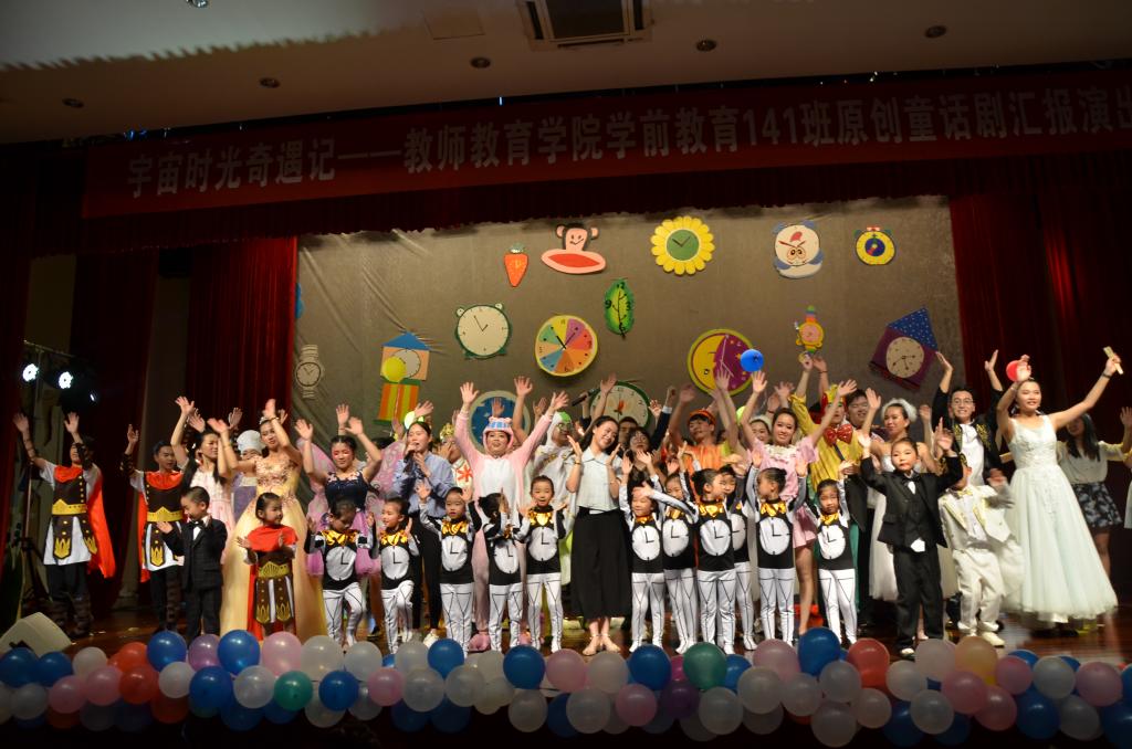 “快,快抓住坏毛毛虫”,“变变变,变出粉红色的棉花糖”……6月2日晚的月明音乐楼成为了欢乐的海洋,台下孩子们明朗的笑声、齐声的应和声和热烈的欢呼声,与台上国王、怪兽、魔术师等投入的表演奇妙地互动交融着!这是教师教育学院学前教育专业2014级实践汇报演出——原创童话剧《宇宙时光奇遇记》的演出现场场景。