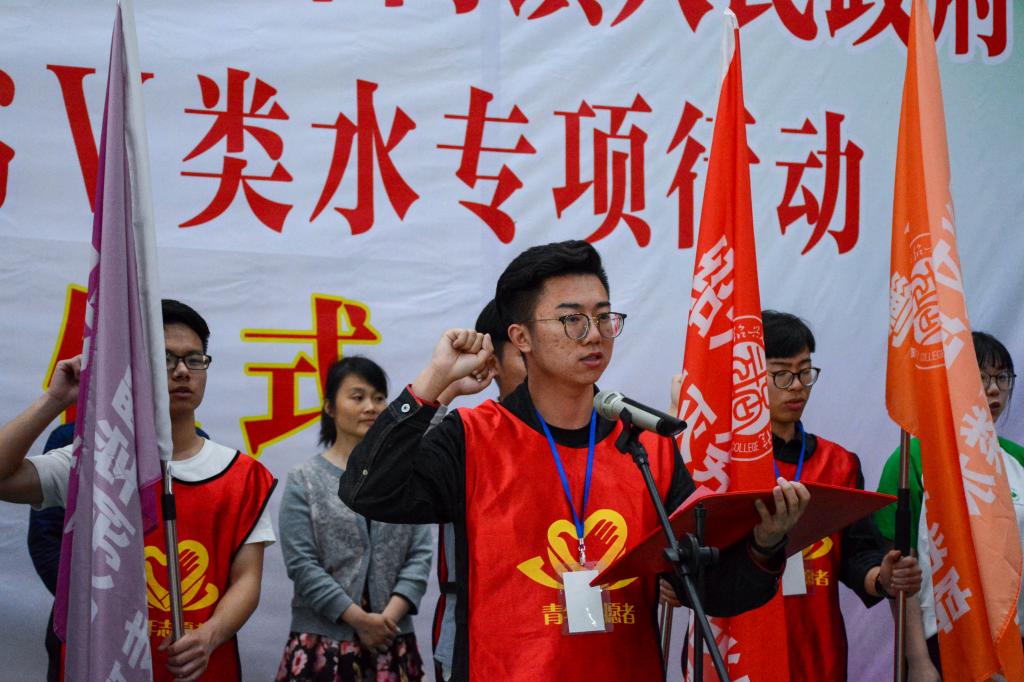 “我以青春的名义,自觉响应‘剿灭劣Ⅴ类水’集结号令,助力“五水共治”,激浊扬清,以青春意志,树时代榜样,齐心协力……”近日,两百余名治水志愿者汇聚一堂,集体郑重宣誓,共同吹响“全面剿灭劣Ⅴ类水”的集结号,为美丽水乡建设贡献青年学子的智慧与力量。
