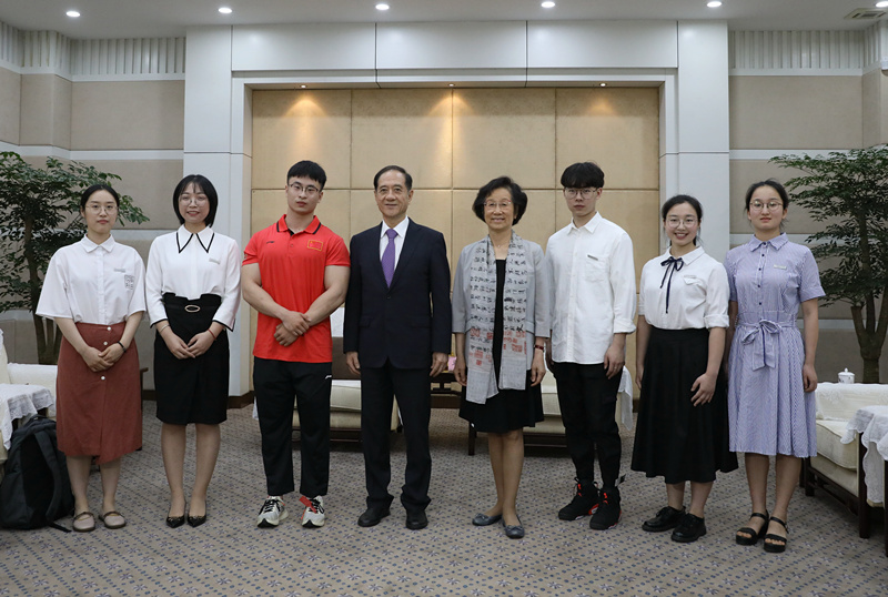 颁奖典礼之前,韩启德院士和袁明教授在铁城科教馆二楼接待室亲切接见了获奖学生及历年部分获奖代表。