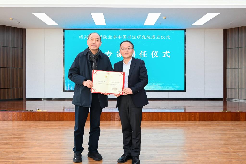 会上举行了兰亭中国书法研究院专家聘任仪式,聘任鲍贤伦为兰亭中国书法研究院名誉院长,拟聘任赵雁君为兰亭中国书法研究院首席专家,聘任祁小春为兰亭中国书法研究院理论首席专家,聘任刘恒为兰亭中国书法研究院创作首席专家,聘任沈浩为兰亭中国书法研究院教育首席专家,聘任朱培尔为兰亭中国书法研究院文化传承首席专家,聘任沈伟为兰亭中国书法研究院名誉副院长,聘任刘小华为兰亭中国书法研究院常务副院长,聘任鲁迅人文学院教授张建军为兰亭中国书法研究院副院长。赵阳为受聘专家颁发聘书。陈均土宣读聘任文件。