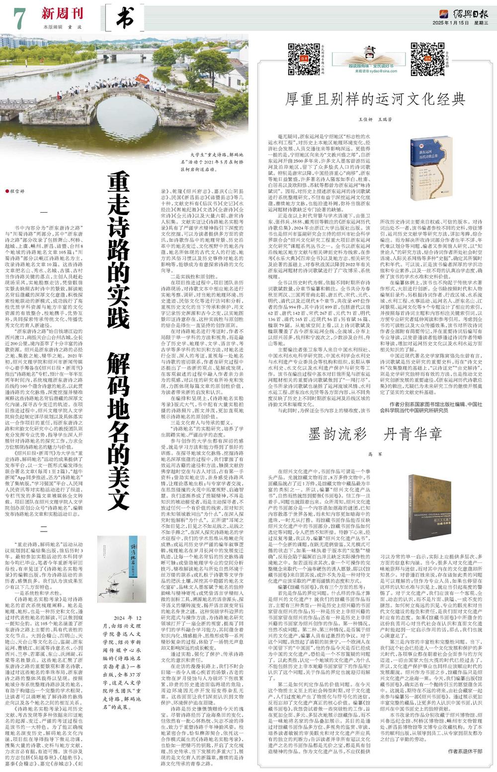 绍兴日报1月15日:重走诗路的实践解码地名的美文