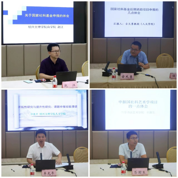 四位老师分别以《国家社科基金项目申报的体会》《国家社科基金后期资助项目申报的几点心得体会》《开拓性研究和提升性研究:课题申报经验漫谈》《申报国社科艺术学项目的一点体会》为题,结合自身国家社科基金项目的申报成功经验,从国家社科基金项目类别、项目申报前期准备、申报书的撰写、后期资助项目书稿的准备等方面向在场社科研究人员作了毫无保留的分享,并就项目申报的相关问题同与会人员展开深入的交流与探讨。