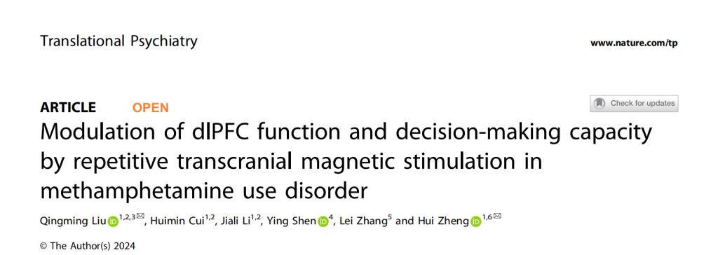 近日,久久精品一区二区|久久久一区二区三区|欧美日韩视频|欧美福利视频|高清欧美性猛交xxxx黑人猛交|久久久www成人免费精品|在线观看成人网站刘庆明博士团队在Translational Psychiatry(SCI,IF=5.8,中科院1区top)期刊上发表了题为“Modulation of dlPFC function and decision-making capacity by repetitive transcranial magnetic stimulation in methamphetamine use disorder”的研究论文,久久精品一区二区|久久久一区二区三区|欧美日韩视频|欧美福利视频|高清欧美性猛交xxxx黑人猛交|久久久www成人免费精品|在线观看成人网站心理学系、大脑、心智与教育研究中心刘庆明博士为第一作者,上海交通大学医学院上海市精神卫生中心郑辉博士为共同通讯作者。该研究采用爱荷华博弈任务(Iowa Gambling Task,IGT)揭示MUD患者的决策能力受损,并采用计算建模技术进一步探索潜在的计算心理机制。依据躯体标记假说的推理,rTMS对 MUD 患者的决策损伤的逆转,可能是通过改善左侧dlPFC脑区的功能来实现的。本研究不仅为甲基苯丙胺使用障碍的康复提供了新的见解,也强调了进一步以理论探索推动成瘾疾病的无创脑刺激调控发展的必要性。