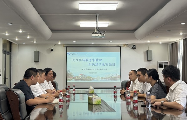 在第40个教师节来临之际,9月9日上午,曹娥街道党工委副书记任坤、党工委委员孙云帆等一行来上虞分院开展教师节走访慰问,并就校地共建进行洽谈。学院党政领导班子给予接待。