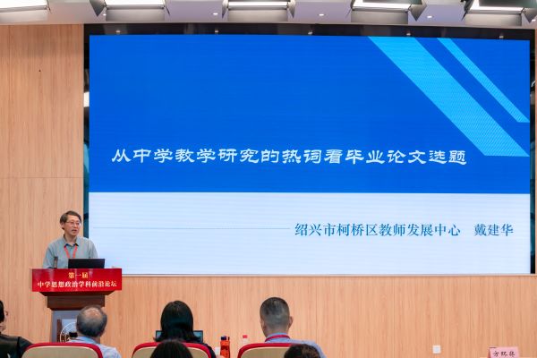 第二阶段,绍兴市柯桥区教师发展中心戴建华、杭州市文华中学韩英、杭州市临平第二中学王涛和绍兴市镜湖中学高珺、分别围绕《从中学教学研究的热词看毕业论文选题》《议题式教学与学科思维能力的培育》《教育科研模型漫谈》《代表课:思政教师专业成长的富矿》作报告,该阶段由马克思主义学院专业主任王明亮主持。