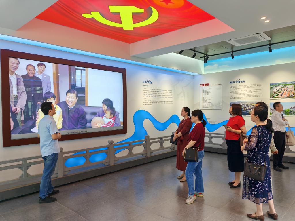 随后,教师党员们考察了章学诚纪念馆,学习了解章学诚经史致用的史学思想、感受“成一家之言”矢志不渝做学问的治学精神和“史家必具史德”及为事为人品德为上的学术品行。教师党员们还参观了新屯南村“江南威尼斯”主题实践馆及环直荡江核心区,探寻习近平总书记走过的足迹、擘画的印迹,汲取总书记思想伟力。实践馆内陈列的“治水先锋”党员日志、村民手写的感谢信等实物,让老师们直观感受到基层党组织将红色基因转化为乡村振兴动能的生动实践,切实领会“以人民为中心”发展思想在基层的深入践行。