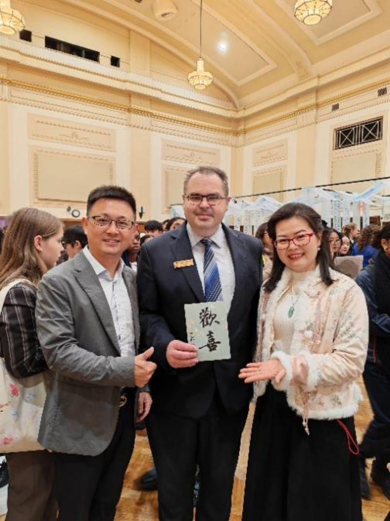 本次活动内容丰富,设有书法、茶艺、诗词拓印、民族服饰体验等十三个文化体验区及“你好,中国”旅游路线展示专区,向澳大利亚民众多角度呈现中华文化魅力。在书法体验区,陈文龙为来宾及当地中学生示范讲解,展现中国书法艺术的独特韵味与深厚底蕴,切实促进了中华优秀传统文化在当地的交流与传播。